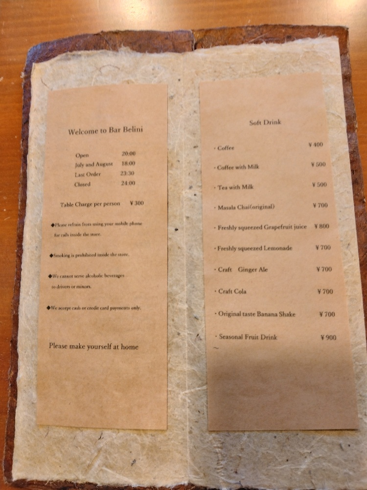 テーブルチャージ 1名様ごとに300円(おつまみ付き)